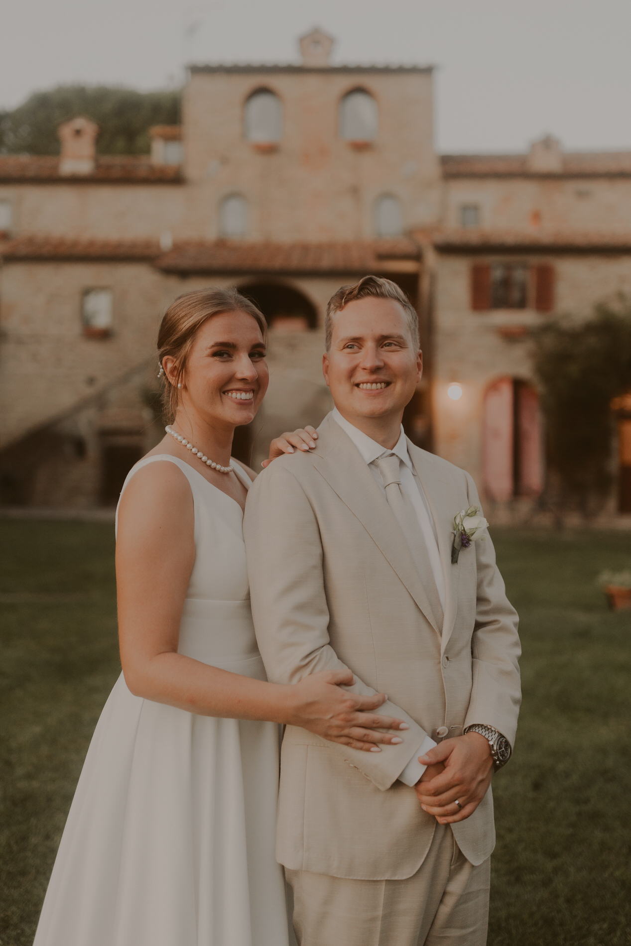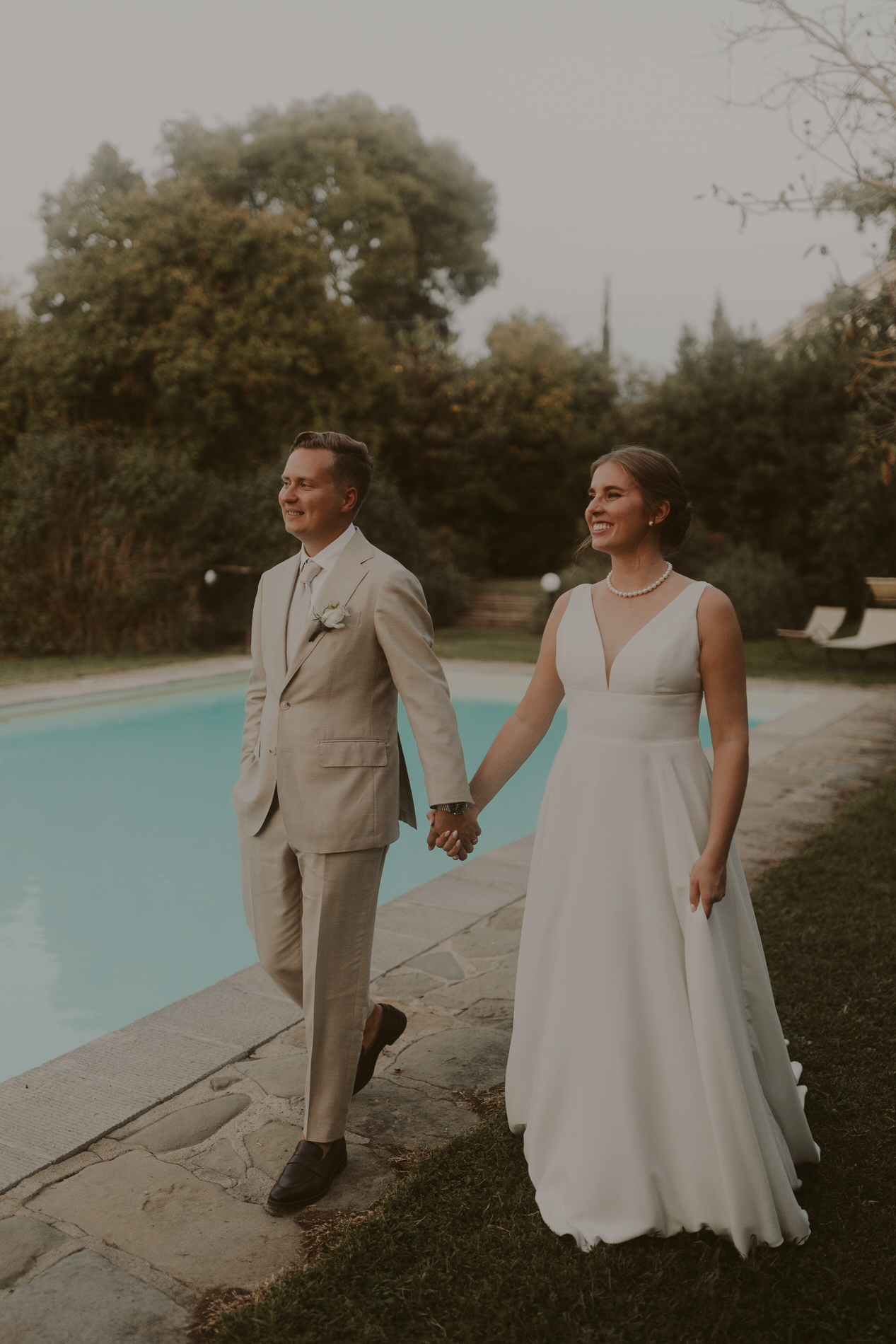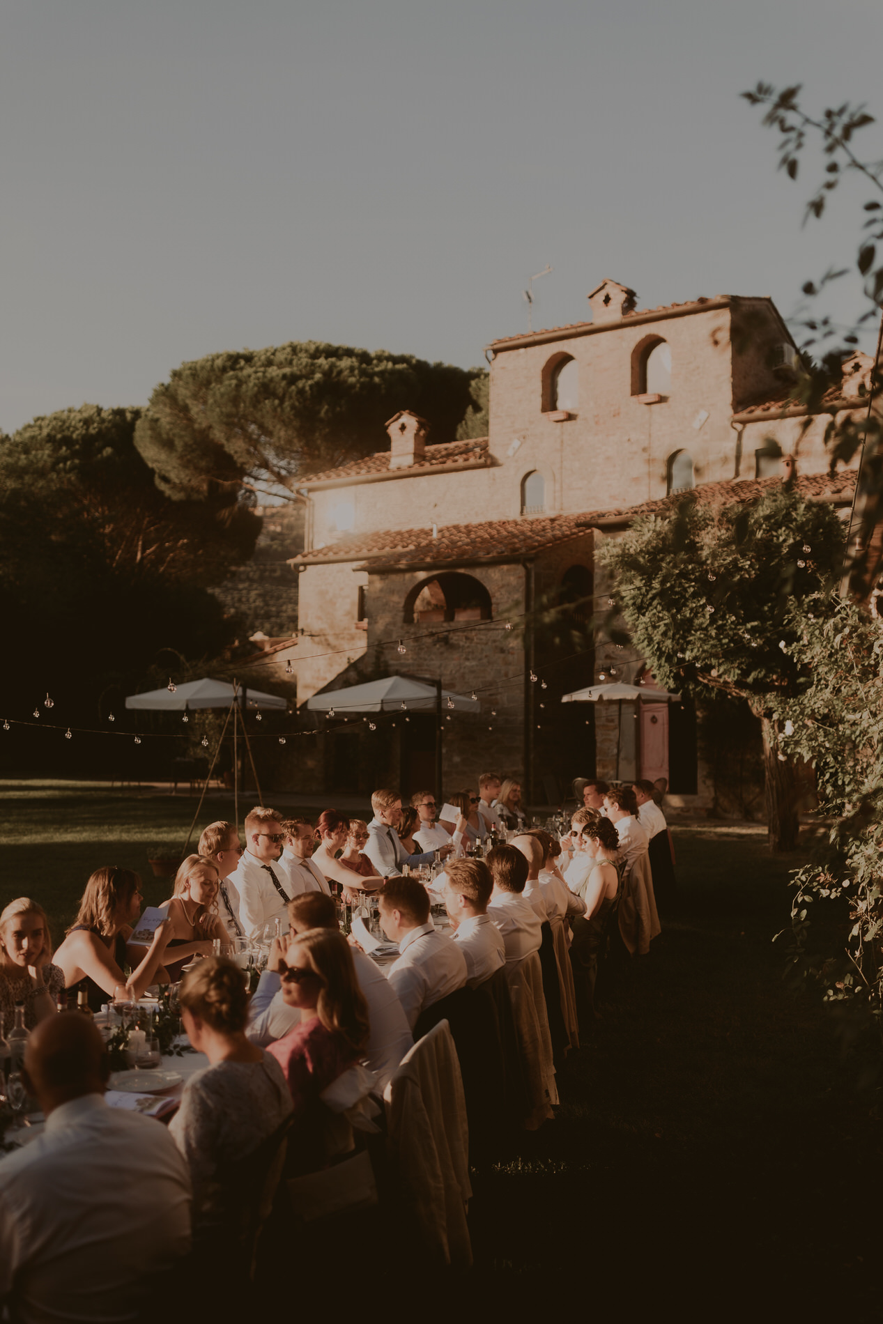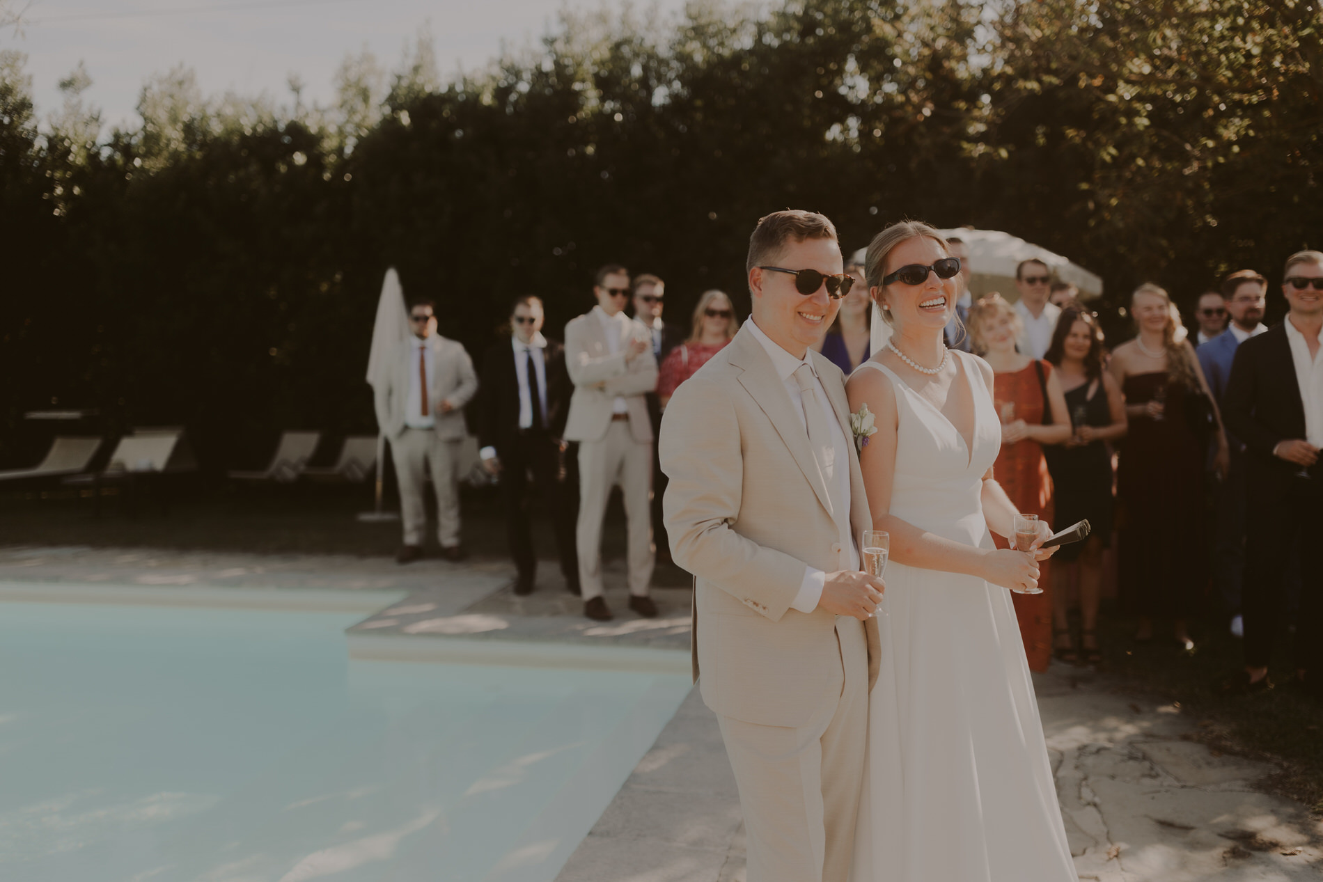 Vihkiminen tapahtui villan pihassa ja se oli erittäin kaunis ja koskettava. Tervetuliasmalja sekä cocktail hour -vietettiin uima-altaan vieressä sekä itse hääjuhlan romanttisen ison pitkän pöydän ääressä laskevan auringon alla. Illasta pääsimme nauttimaan puheista, tiramisun "leikkaamisesta" sekä häätanssista tähtien alla. Hääkuvaajana kokemus oli upea, ja en malta odotaa, että pääsen tulevaisuudessa kuvaamaan lisää häitä niin Italiassa, kuin ympäri muuta Eurooppaa. Kiitos vielä Ronja ja Markus erittäin ikimuistoisesta elämyksestä. Olen niin kiitollinen, että sain olla osa teidän tarinaa!