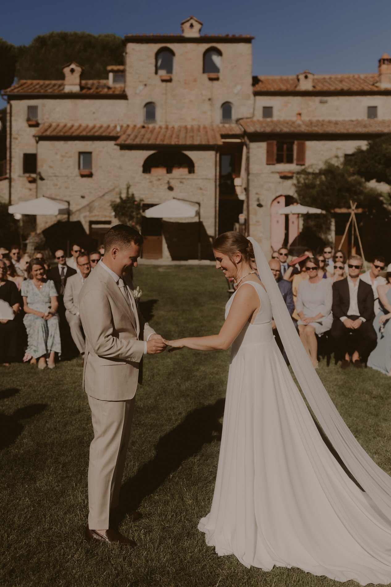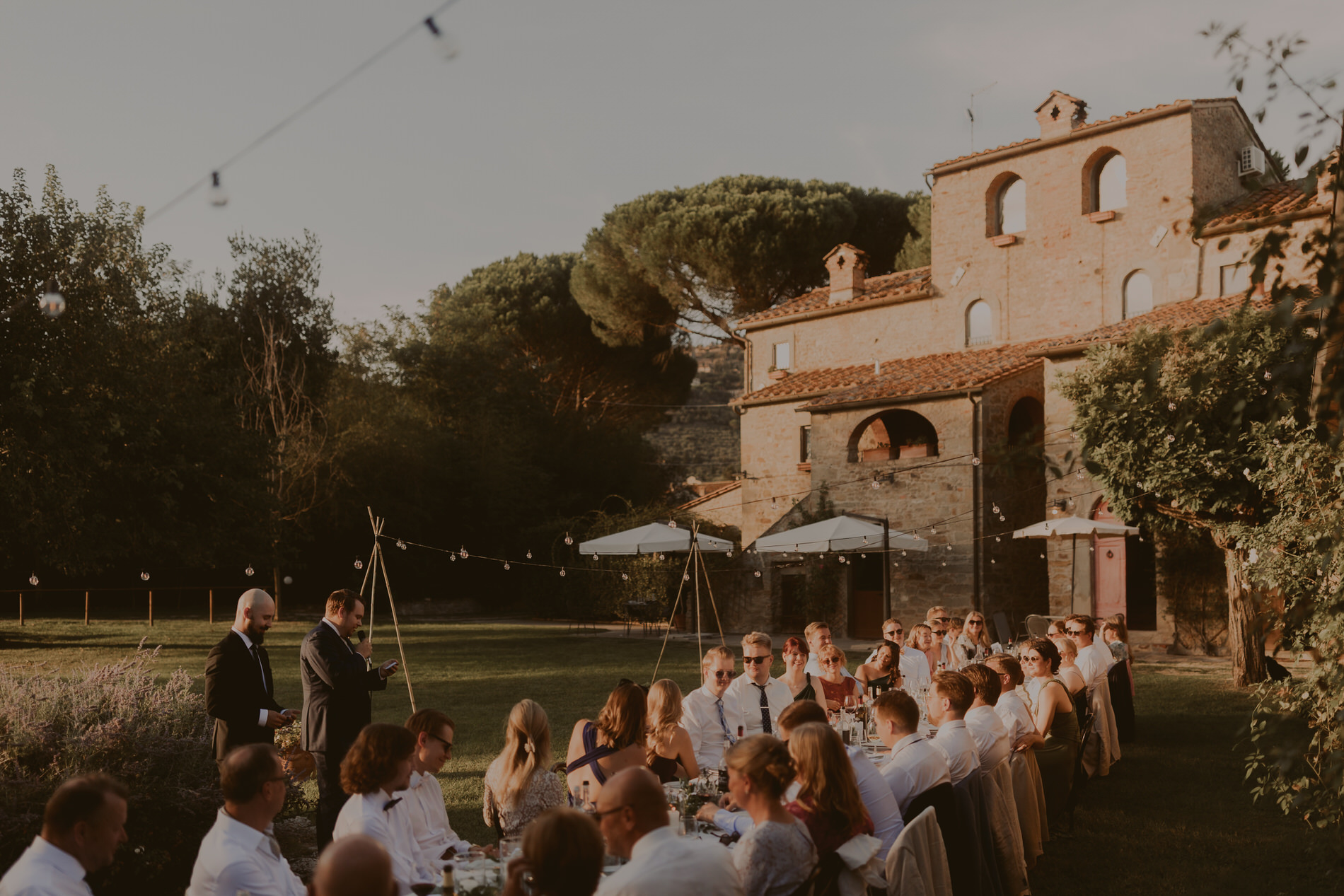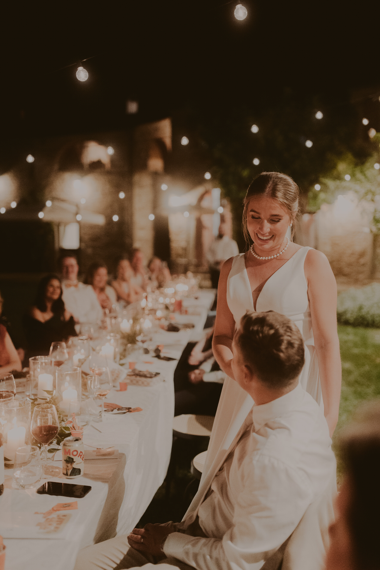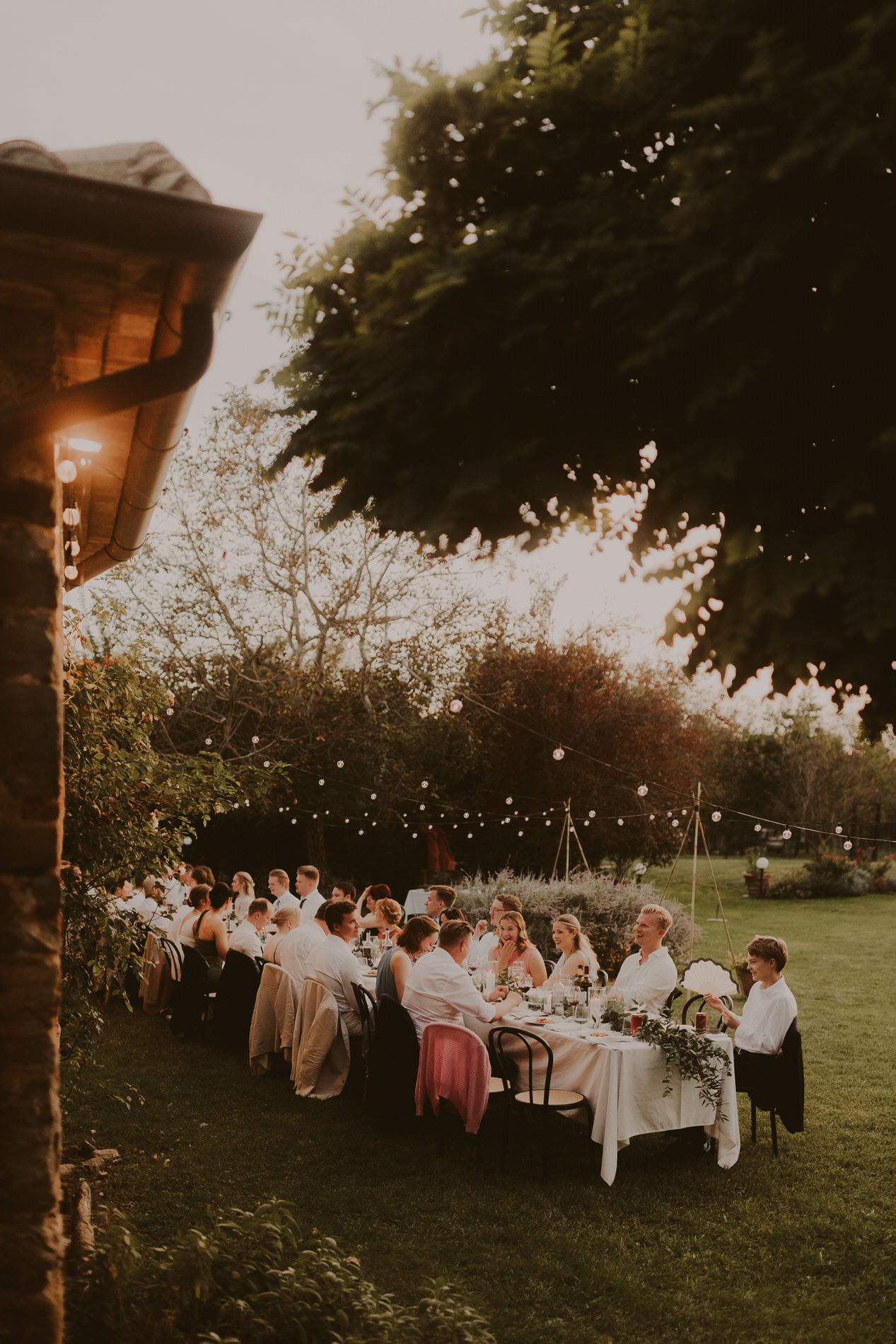 Vihkiminen tapahtui villan pihassa ja se oli erittäin kaunis ja koskettava. Tervetuliasmalja sekä cocktail hour -vietettiin uima-altaan vieressä sekä itse hääjuhlan romanttisen ison pitkän pöydän ääressä laskevan auringon alla. Illasta pääsimme nauttimaan puheista, tiramisun "leikkaamisesta" sekä häätanssista tähtien alla. Hääkuvaajana kokemus oli upea, ja en malta odotaa, että pääsen tulevaisuudessa kuvaamaan lisää häitä niin Italiassa, kuin ympäri muuta Eurooppaa. Kiitos vielä Ronja ja Markus erittäin ikimuistoisesta elämyksestä. Olen niin kiitollinen, että sain olla osa teidän tarinaa!