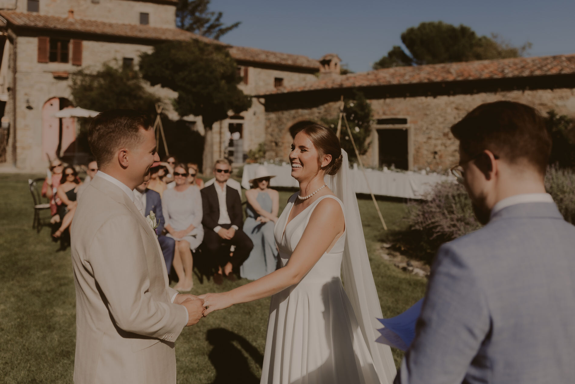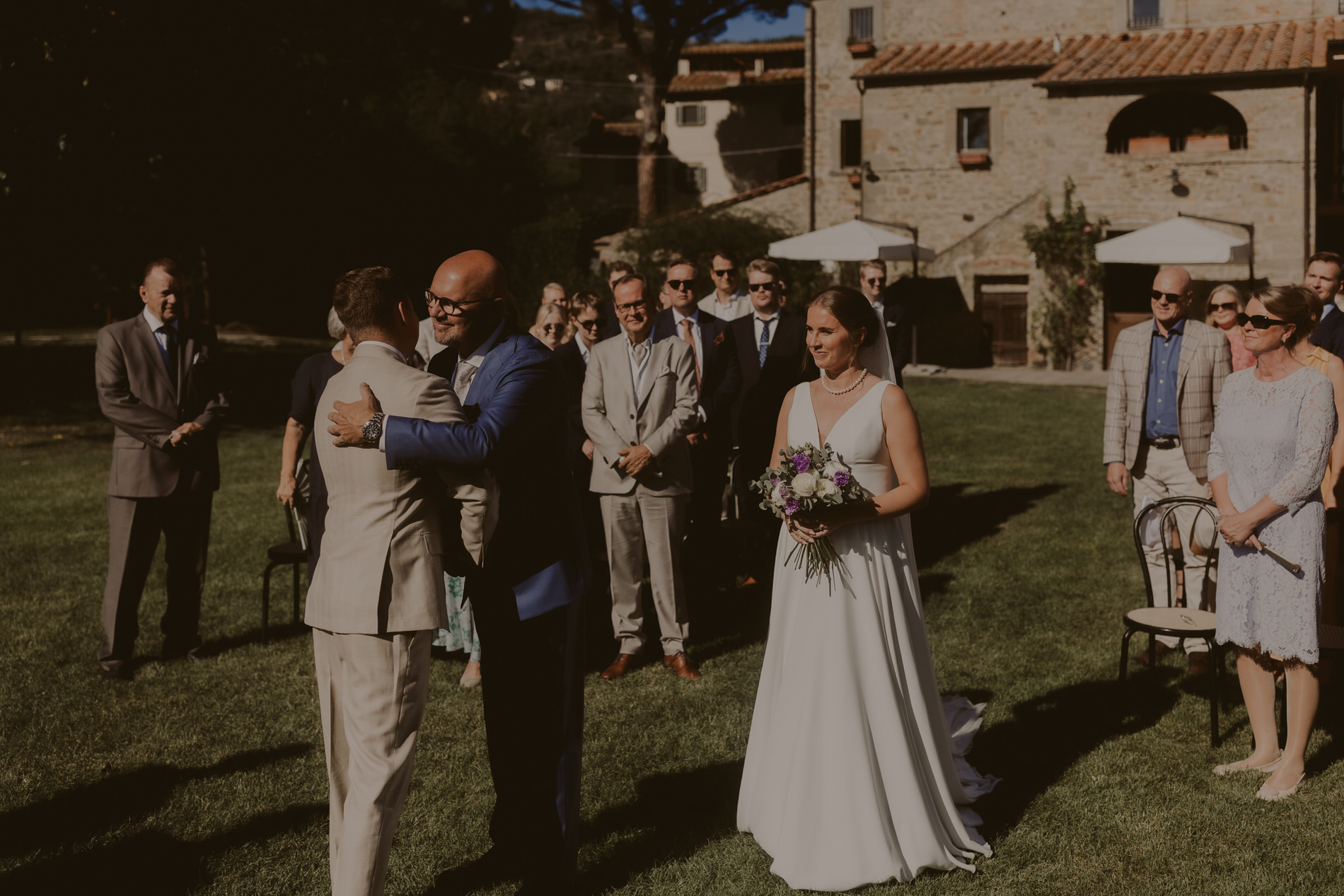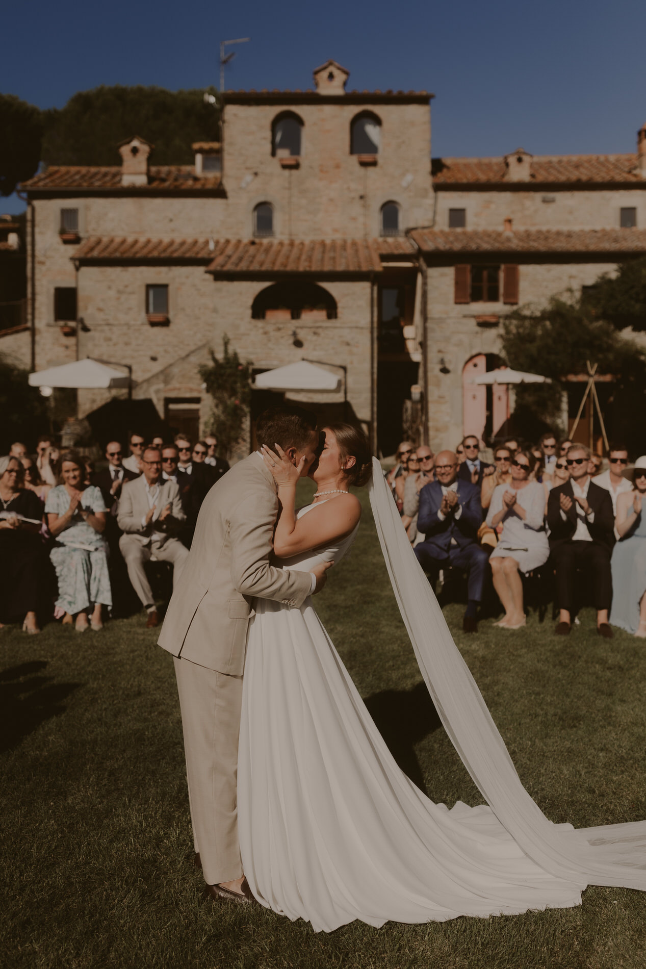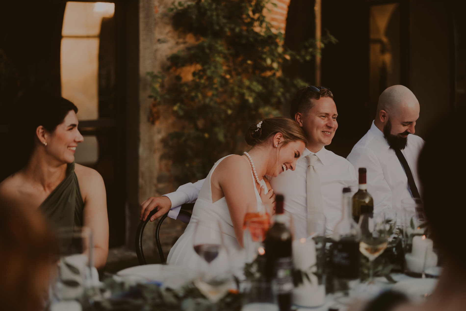 Vihkiminen tapahtui villan pihassa ja se oli erittäin kaunis ja koskettava. Tervetuliasmalja sekä cocktail hour -vietettiin uima-altaan vieressä sekä itse hääjuhlan romanttisen ison pitkän pöydän ääressä laskevan auringon alla. Illasta pääsimme nauttimaan puheista, tiramisun "leikkaamisesta" sekä häätanssista tähtien alla. Hääkuvaajana kokemus oli upea, ja en malta odotaa, että pääsen tulevaisuudessa kuvaamaan lisää häitä niin Italiassa, kuin ympäri muuta Eurooppaa. Kiitos vielä Ronja ja Markus erittäin ikimuistoisesta elämyksestä. Olen niin kiitollinen, että sain olla osa teidän tarinaa!